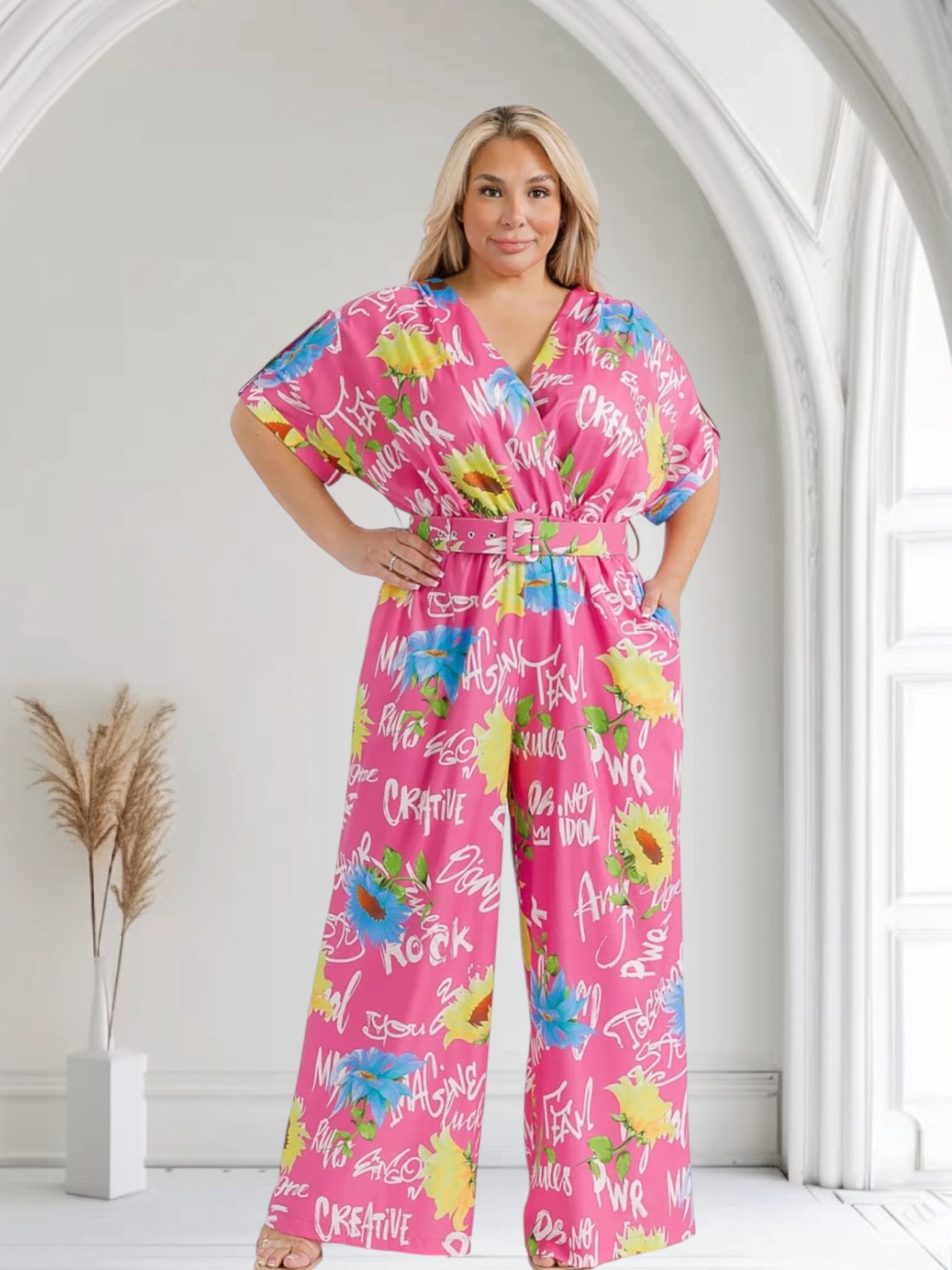 Floral Belted Romper Plus Sizes